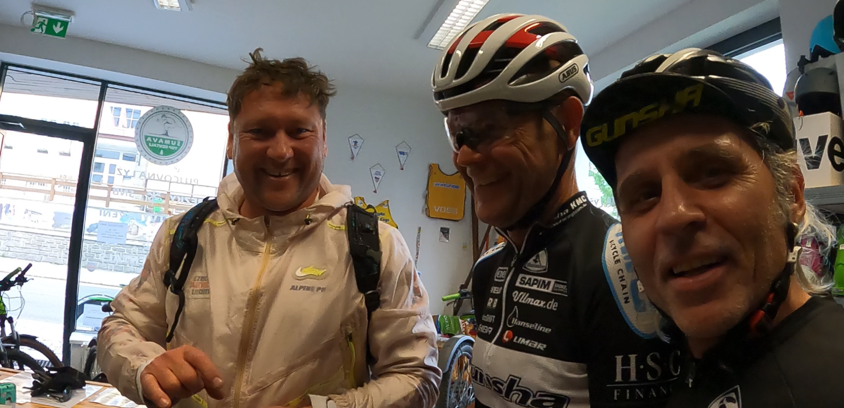 Der dritte Tag begann mit einem Rückschlag: Ein Defekt am Schaltwerk zwang Karl und Georg zu einem Umweg nach Grafenau, wo ein Radhändler die Reparatur vornahm. Die Verzögerung erforderte eine spontane Routenanpassung.